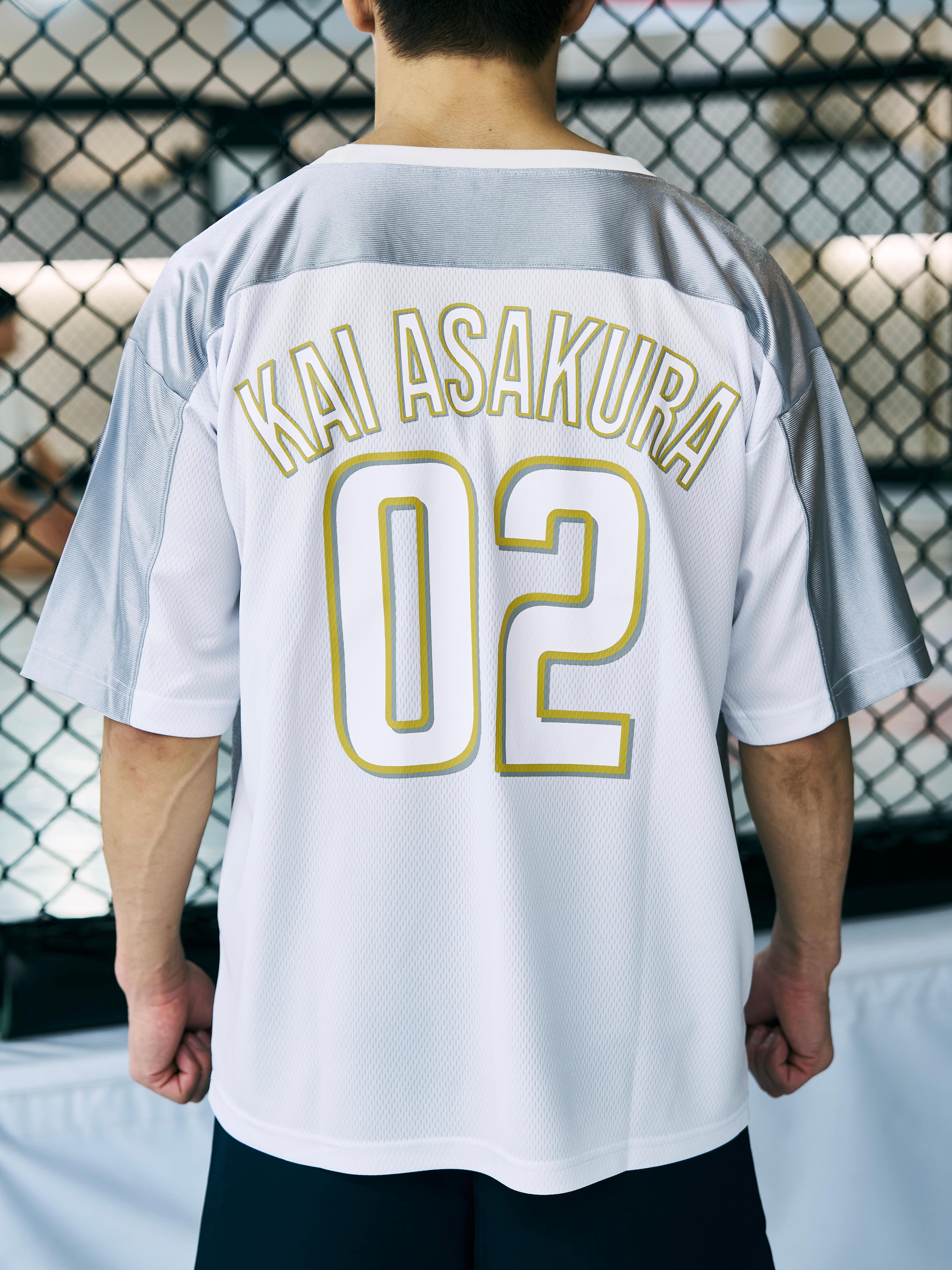 タグ部分には、定番のユニフォームタグをオマージュした朝倉海のシルエットとともに